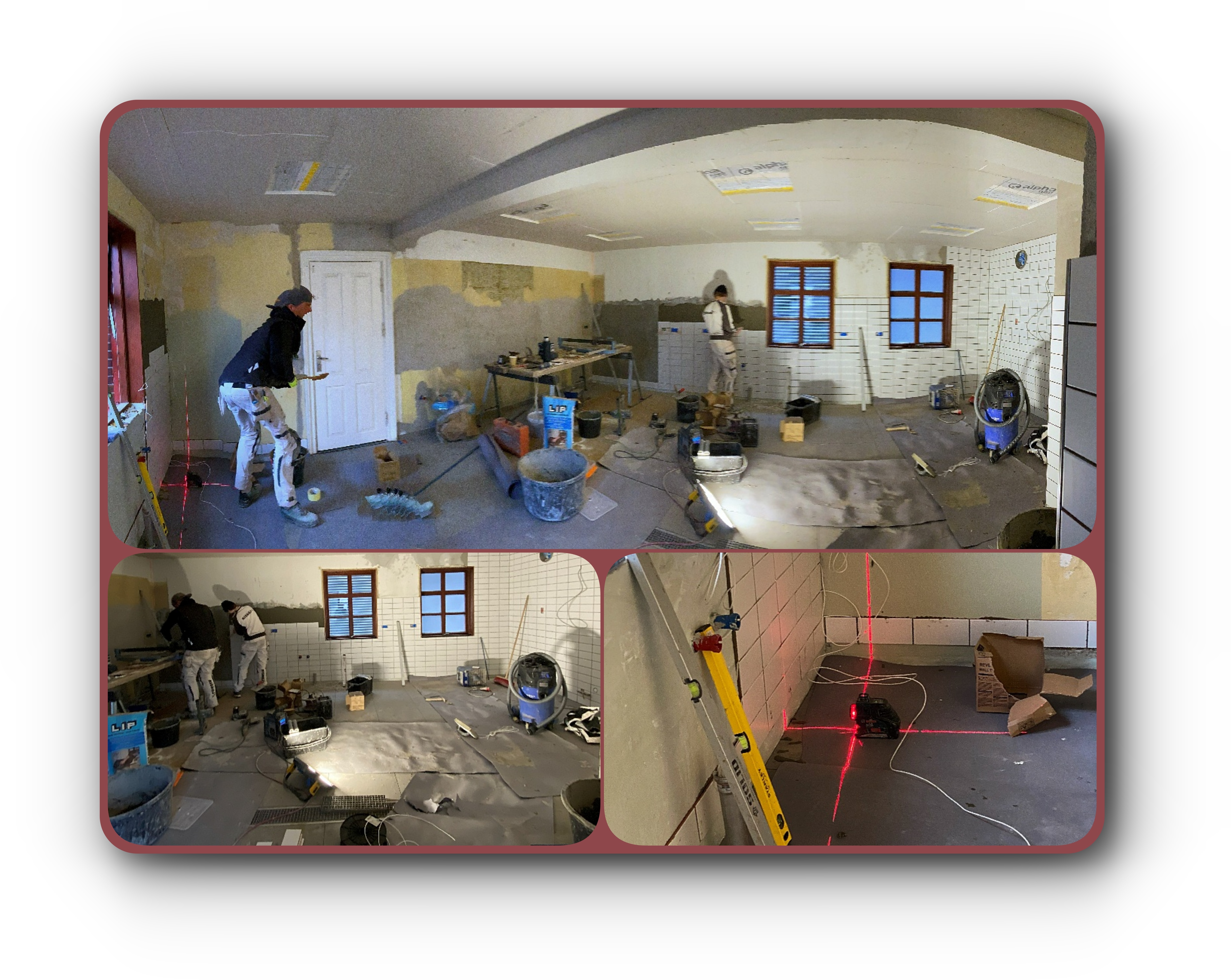 Man kunne næsten skrive: ”Snehvide og de 25 store dværge angreb køkkenet i Husby Forsamlingshus.” Vi var så mange, at vi næsten kunne danse kædedans med alle de nedbrydningsmaterialer, der skulle ud på en af de ca. 10 trailere, der var linet op udenfor. Hvad enten det var træ skabe, loftplader eller rockwool i små klumper, der er pustet ind for flere år siden, der skulle på