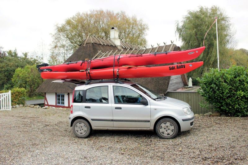 Med lejen følger svømmevest, pagaj og sprayskirt. Lejer sørger selv for udstyr til transport af kajakkerne.