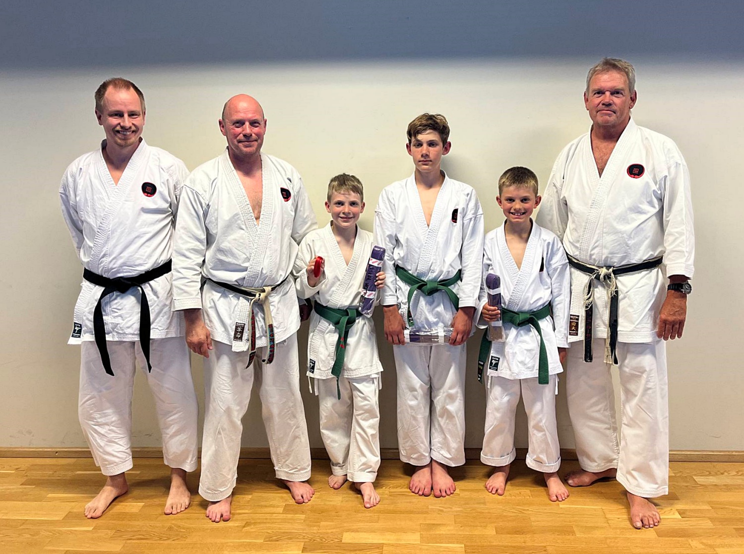 De er nu så langt fremme i deres karate udvikling, at vi kan skimte en junior sortbælte graduering om et par år, hvis den gode indsats fortsætter. På billedet er drengene flankeret af deres 2 instruktører på venstre side og den danske cheinstruktør Sensei Henrik Larsen på højre side.
