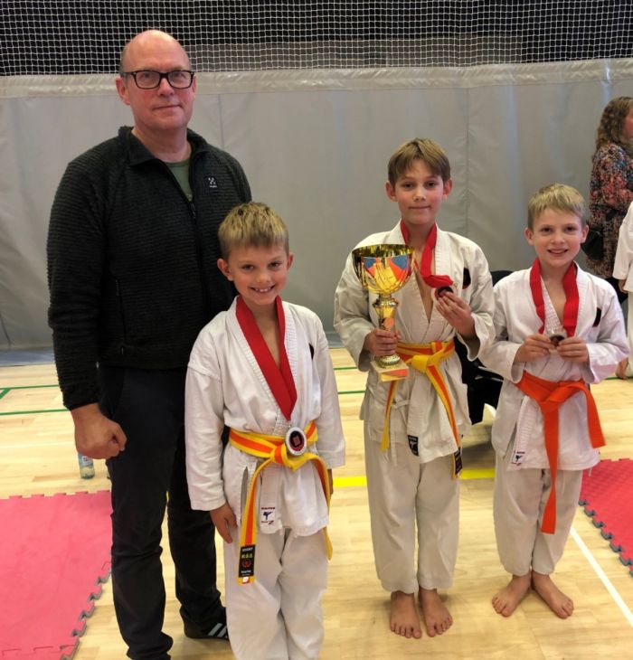 For god ordens skyld skal det oplyses, at der var mange børn med, men Vestfyn sad hårdt på metallet i kata, som er serier af teknikker, der bruges til at vurdere udøverens tekniske niveau. Drengene gjorde det også godt i kamp. Langt de fleste kampe var meget lige. Vi sætter lidt mere fokus på kamptræning fremadrettet så vi også kan dominere denne række.