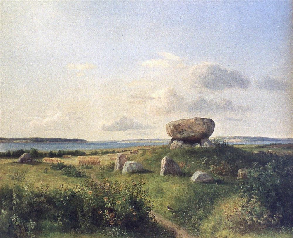 Dankvart Dreyers “Stensætning på øen Brandsø med udsigt mod Grønninghoved og Anslet Skov i Slesvig. (1842). Olie på lærred. 123,0 cm x 148,0 cm. Fyns Kunstmuseum / Odense Bys Museer. FKM 2004